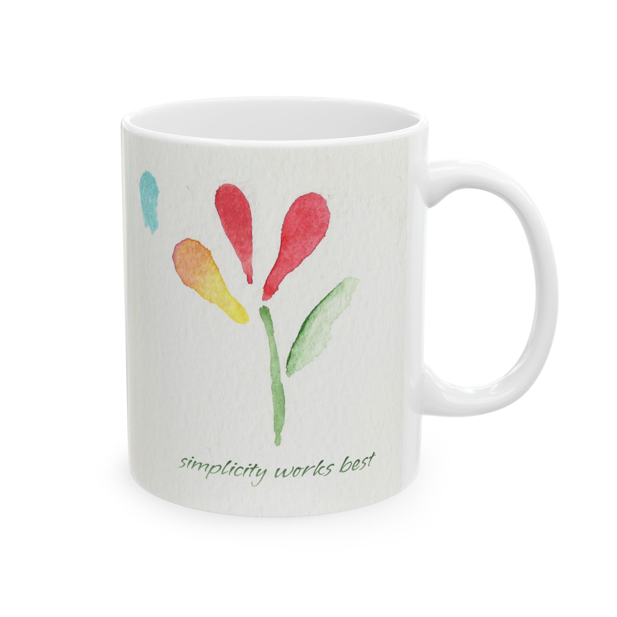 “Simplicity Works Best” | 11oz Mug | Floral Watercolor & Quote